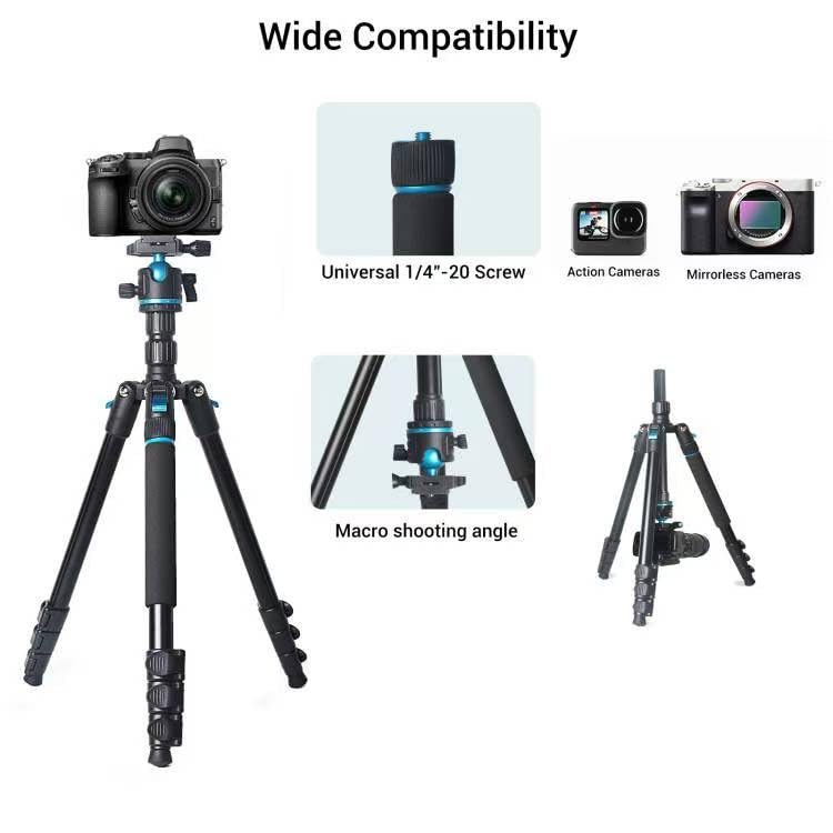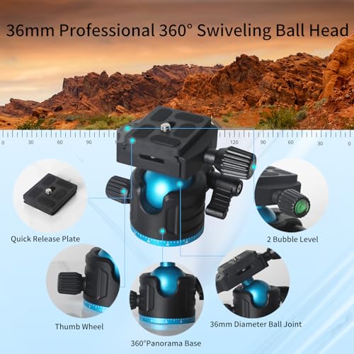 【360 Degree Ball Head】Equipped with a specially designed 36mm metal ball head, this tripod allows for 360-degree rotation. Capture stunning photos at any angle—both horizontally and vertically—making it an essential photo tripod for creative shoots