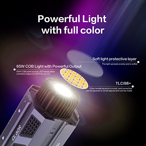 COLBOR CL60R COB Video Light, RGBWW 65W Full Color 2700K-6500K Bowens Mount Led Video Light,Lighting Scenes App Control Continuous Lighting for Photography, Studio Video Lighting
