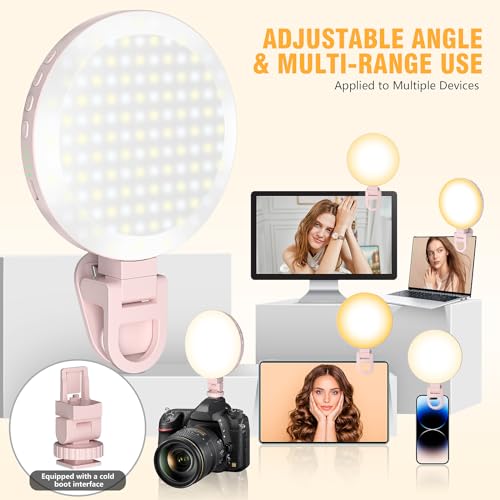 Two Kinds of Clip-on Design: The latest design in 2023 features one-click installation and removal, equipped with a cold shoe interface that works seamlessly with cameras. The portable light clip securely attaches to phones (compatible with cases), cameras, tablets, laptops, vanity mirrors, and other compatible devices with a clip. It is ideal for live streaming on social media platforms such as Facebook, YouTube, TikTok, camera lighting, live performances, and even makeup application