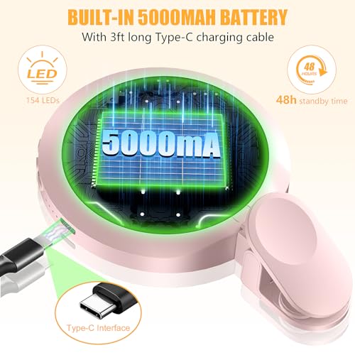 5000mAh Rechargeable Battery: Working up to 48 hours, the LED clip light has a built-in ultra-high-capacity battery. It can be charged using most devices that support Type-C ports, such as laptops, PCs, power banks, USB chargers, and car chargers. Its ultra-portable design lets you carry it wherever you go. (Package includes a Type-C charging cable)