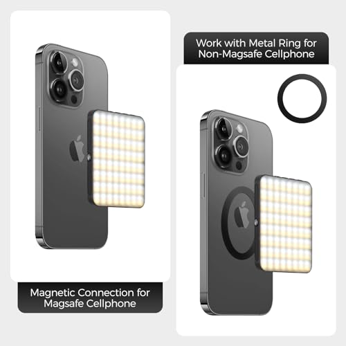 Easy to Install: This magnetic led selfie light can be attached on the cellphone case directly if your phone case is magnetic. For non-magnetic cellphones, you can attach the included metal ring on your phone case. And it also come with a clip-on bracket for laptop and a cold shoe mount for a camera.