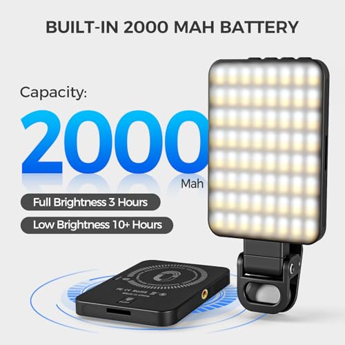 Long Working Time: With a build-in 2000 mAh battery, this cellphone selfie light can work under full Brightness mode for 3 Hours and low brightness mode for over 10 hours. Perfect for