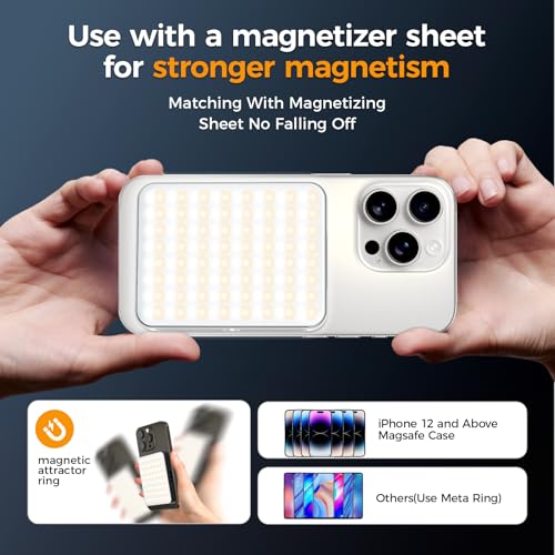 【Magnetic Design for Instant Setup】Say goodbye to complicated setups! The gliship Magnetic Selfie Light features a powerful magnetic attachment that effortlessly connects to iPhone 12/13/14/15 models. For Android and older iPhones, the high-strength N52 magnet ring makes it a breeze to secure. Plus, it sticks to most metal surfaces, providing reliable lighting anytime, anywhere!