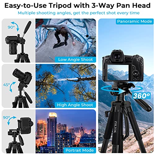 75″ Camera Tripod for Cell Phone, Travel Tripod for Camera with Wireless Remote, Heavy Duty Camera Stand Tripod for DSLR/SLR/DV/GoPro (Black)