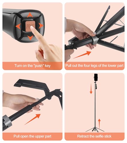 STABLE FOUR-LEG DESIGN, ENHANCED USER EXPERIENCE: Crafted from premium aluminum alloy, ensuring durability and stability. Equipped with elongated tripod legs and an umbrella-like skeleton structure, along with upgraded four-point support, metal ribs, and aluminum alloy telescopic rods, it ensures outstanding stability even during video recording. Ideal for users requiring a tall tripod, selfie stick tripod with remote, or phone stand.