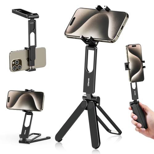 ULANZI MA26 Foldable Phone Tripod – Pocket Cell Phone Vlog Video Tripod Handle Aluminium Smartphone Desk Stand 2 Cold Shoe Small Size All in One Lightweight Portable Vlog Stick for iPhone Samsung