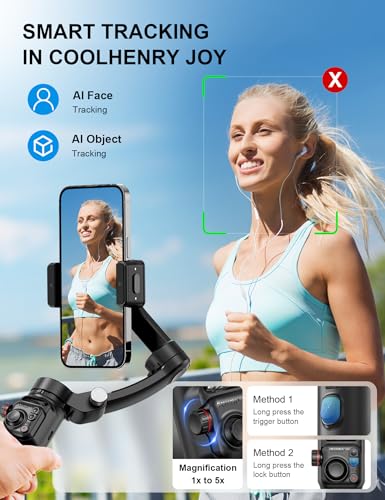 【AI TRACKING & EFFORTLESS SHOOTING】Our gimbal has a built-in tracking system that can accurately recognize and perform face, body, and object tracking in three modes to meet your different shooting needs, allowing you to take more creative photos. Moreover, the gimbal with gesture control function captures your most creative shots effortlessly. This phone stabilizer is perfect for travel bloggers, capturing every moment with fluid motion and hand gesture controls.