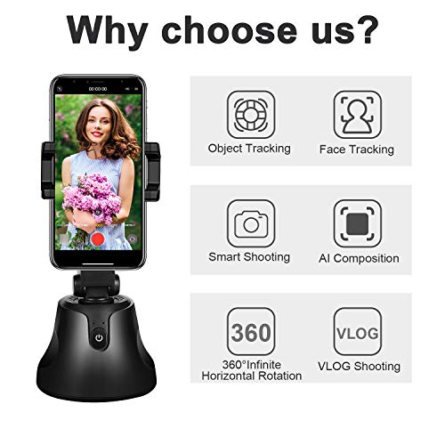 AI Auto Face/Object Tracking – The smart tracking holder adopts intelligent AI system technology and optical lenses, which can quickly and accurately recognize facial or body movements, and rotate 360°following movements stably for Live Video Recording/YouTube/Tiktok, perfect for vlogging, live streaming, and dynamic shots.
