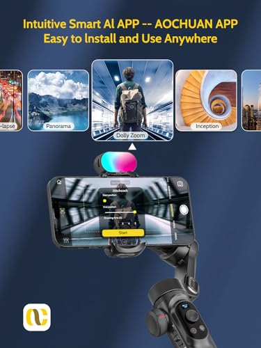Professional Gimbal Stabilizer for Smartphone,RGB Magnetic Refill Light,OLED Display LED Light,face Tracking,Gesture Control,Professional 3-axis stabilizer for Android &iPhone, AOCHUAN XPRO KIT Black